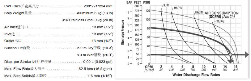 技术参数(以橡胶隔膜泵为例)