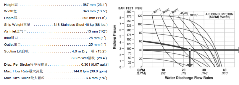 技术参数(以橡胶隔膜泵为例)